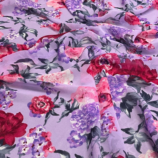 Polyester Chiffon Woven Print Fabric By The Yard Lavender Rose Flower Summer Floral Print Summer Flowy Dress