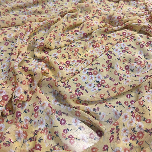 Polyester Chiffon Woven Print Fabric By The Yard Small Mini Yellow Summer Floral Print