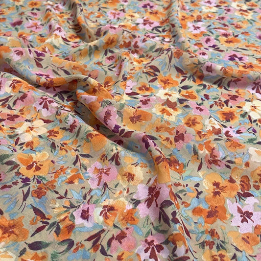 Polyester Chiffon Woven Print Fabric By The Yard Small Multicolor Sage Summer Floral Print