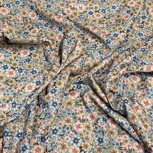 Airflow Woven Print Fabric By The Yard Small Multi Color Summer Floral Print Sage