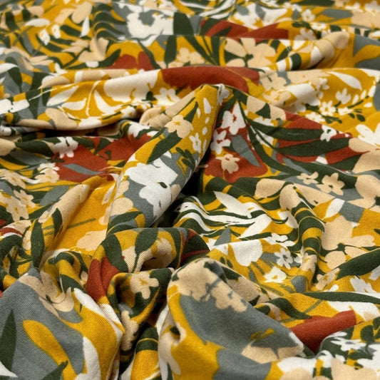 DBP Double Brushed Poly Spandex Print Vintage Floral Palm Tree Rustic Print By The Yard