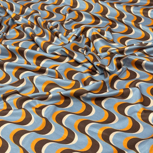 DBP Double Brushed Poly Spandex Print Vintage Waves 70s Rustic Print By The Yard