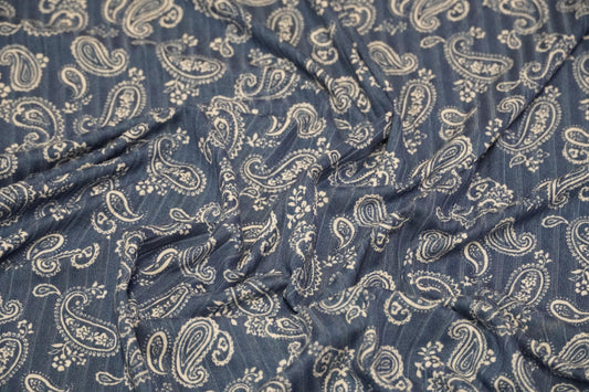 DBP 8x2 Rib Knit Paisley Double Brushed Polyester Spandex Vintage Bandana Monotone Denim Fabric By The Yard