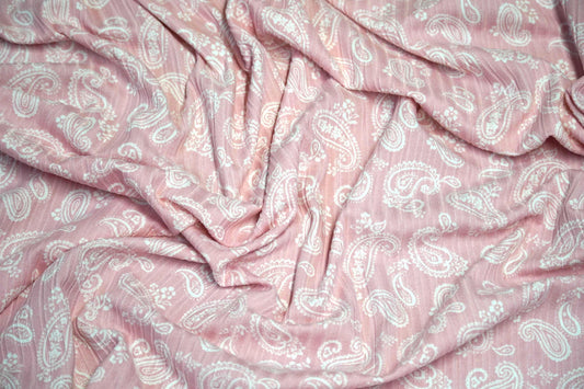DBP 8x2 Rib Knit Paisley Double Brushed Polyester Spandex Vintage Bandana Monotone Pink Fabric By The Yard