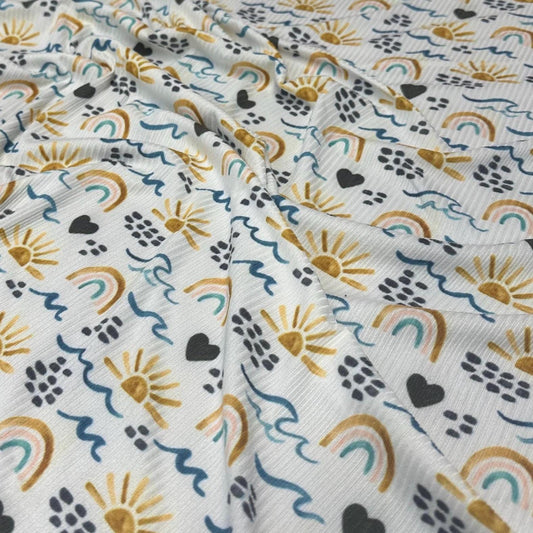 DBP 4x2 Rib Knit Ocean Rainbow Waves Double Brushed Polyester Spandex Floral Fabric By The Yard Blue
