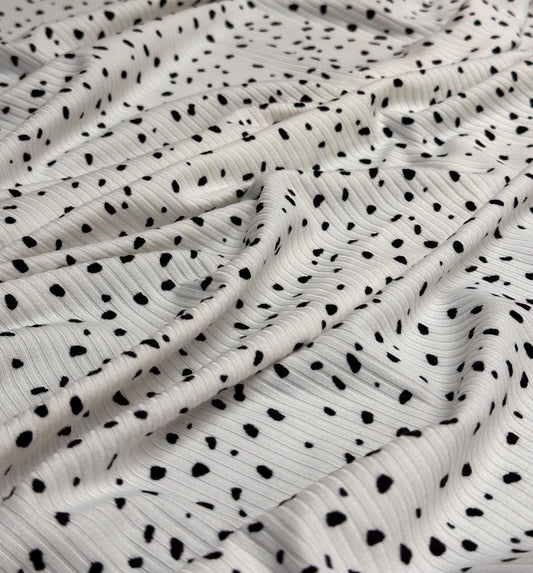 DBP 4x2 Rib Knit Mini Dot Double Brushed Polyester Spandex Vintage DitsyPolka Dot Monotone White Black Fabric By The Yard