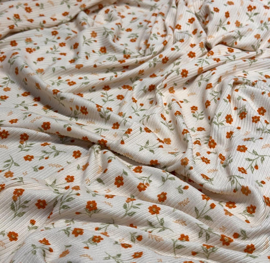 DBP 4x2 Rib Knit Small Flower Double Brushed Polyester Spandex Floral Fabric By The Yard