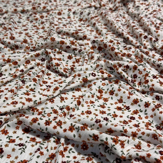 DBP 4x2 Rib Knit Mini Flower Double Brushed Polyester Spandex Vintage Ditsy Daisy Floral Monotone Cream Coral Fabric By The Yard