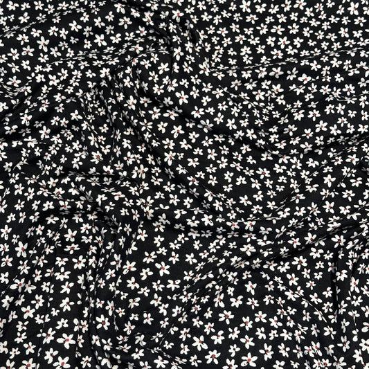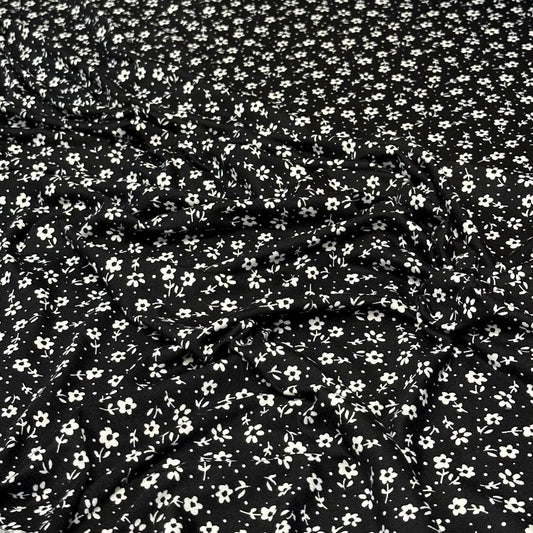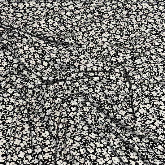 DBP Double Brushed Poly Spandex Print Ditsy Flower Vintage Floral Print By The Yard Black White