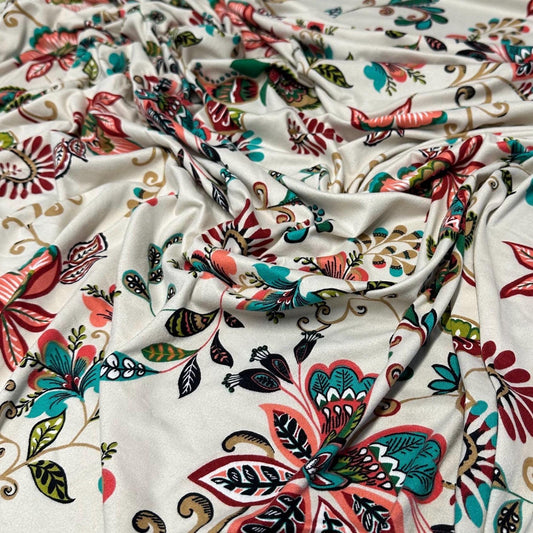 DBP Double Brushed Poly Spandex Print Ditsy Flower Vintage Floral Paisley Print By The Yard Mulicolor