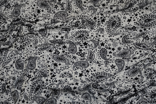 DBP 8x2 Rib Knit Paisley Double Brushed Polyester Spandex Vintage Bandana Monotone White Black Fabric By The Yard