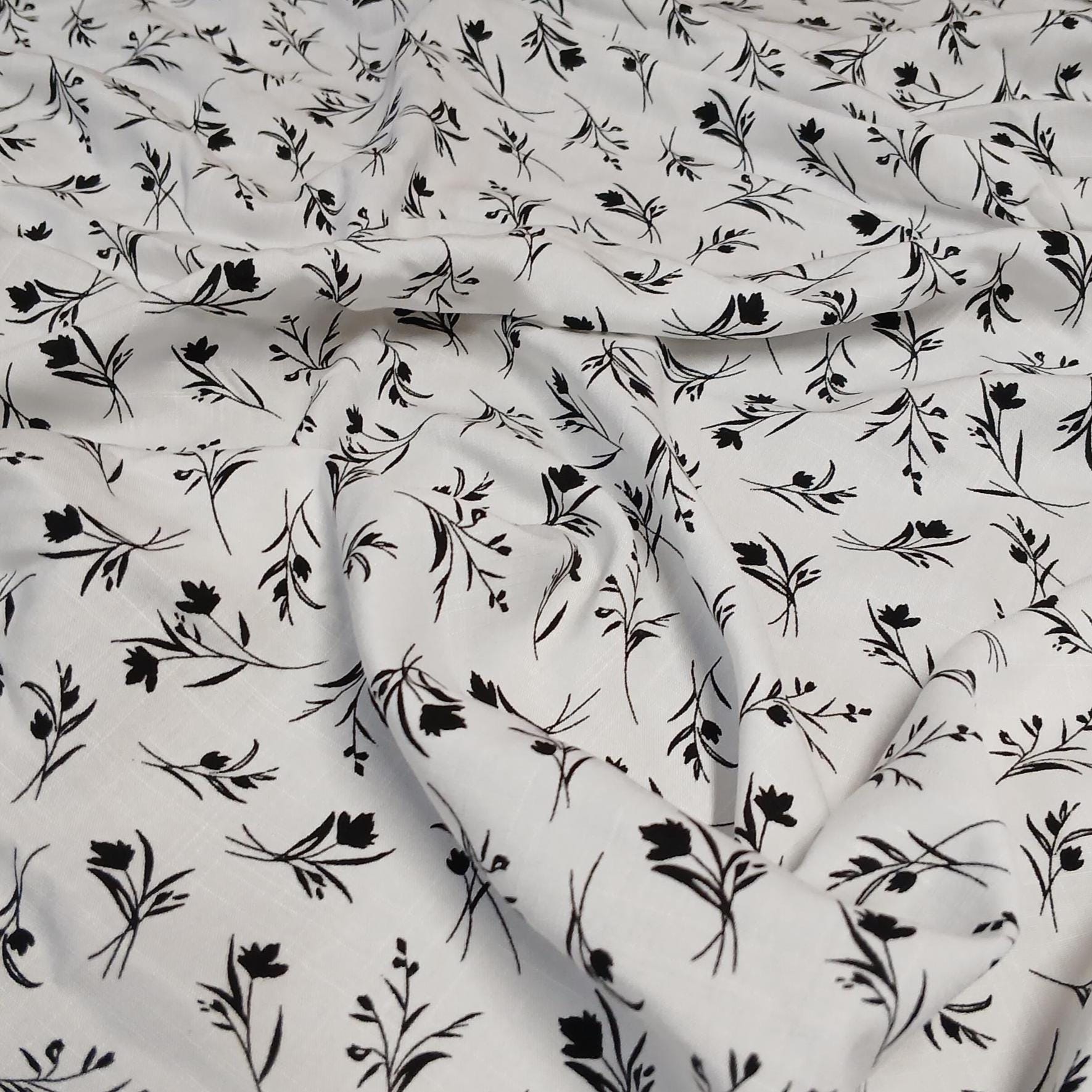 🌟 100% Rayon Challis Fabric – Black and White Floral Compass Print – Soft, Flowy Woven Fabric by the Yard