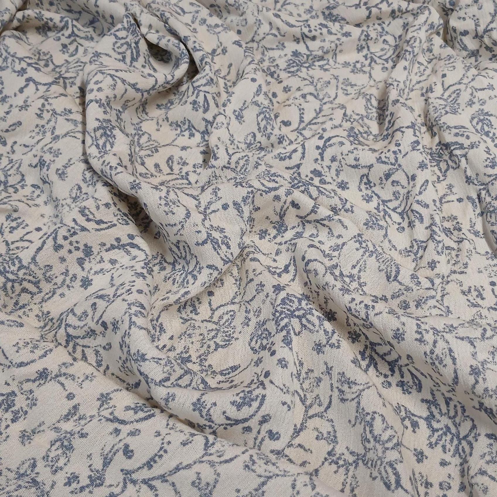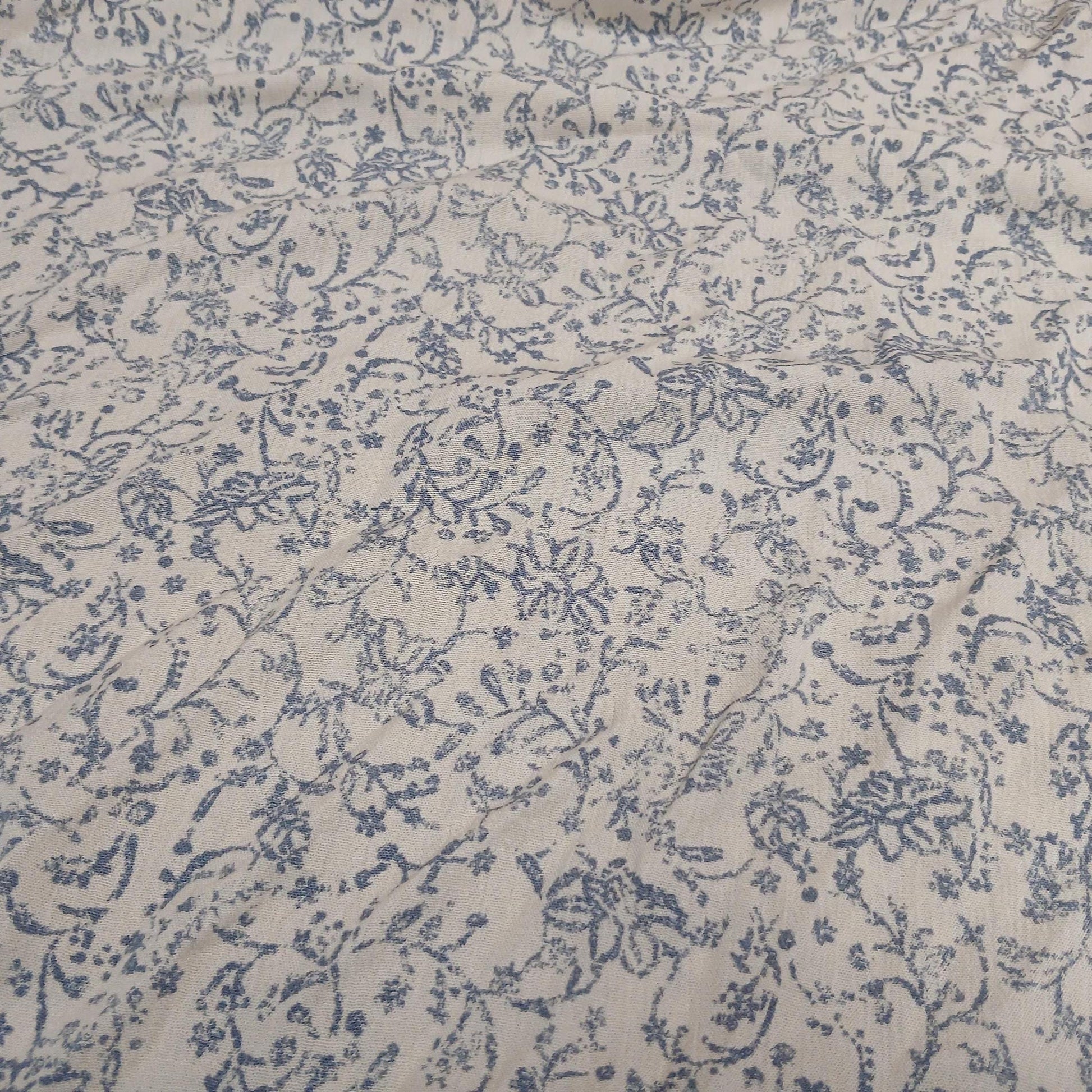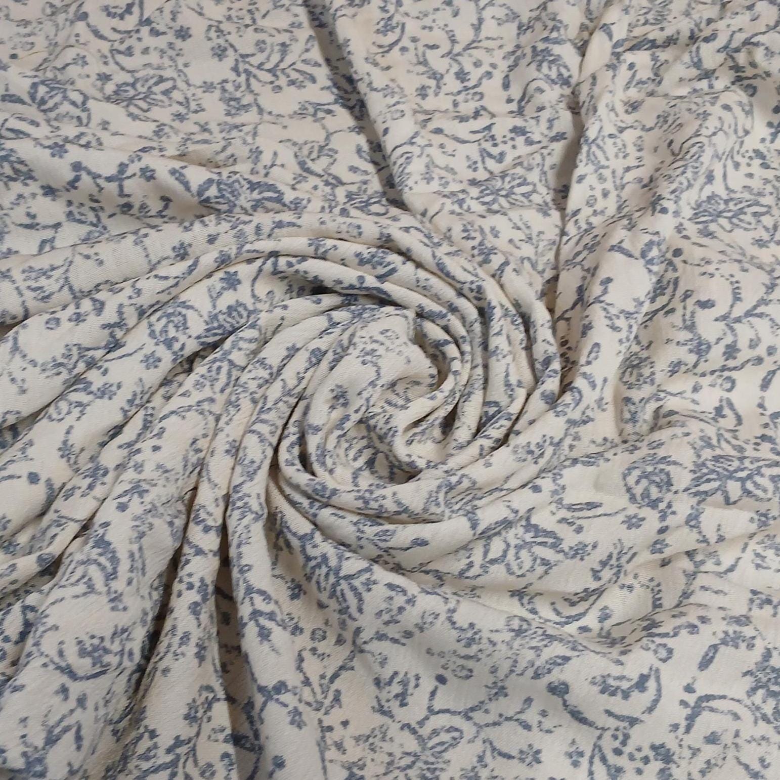 🌟 100% Rayon Challis Fabric – Denim and Cream Vintage Floral Print – Soft, Flowy Woven Fabric by the Yard