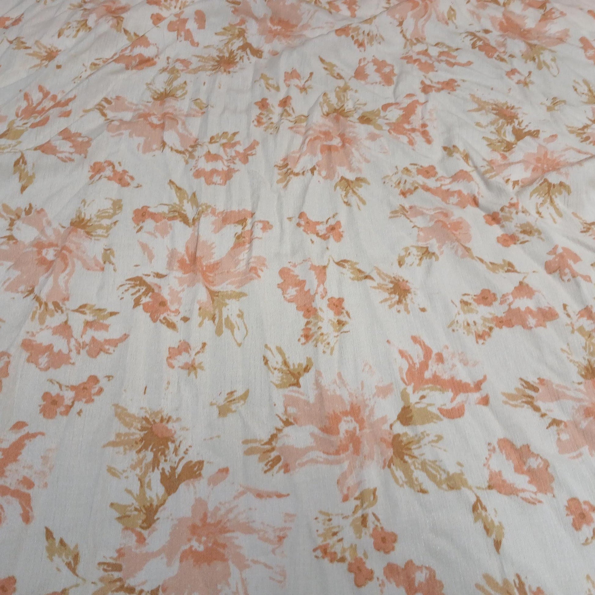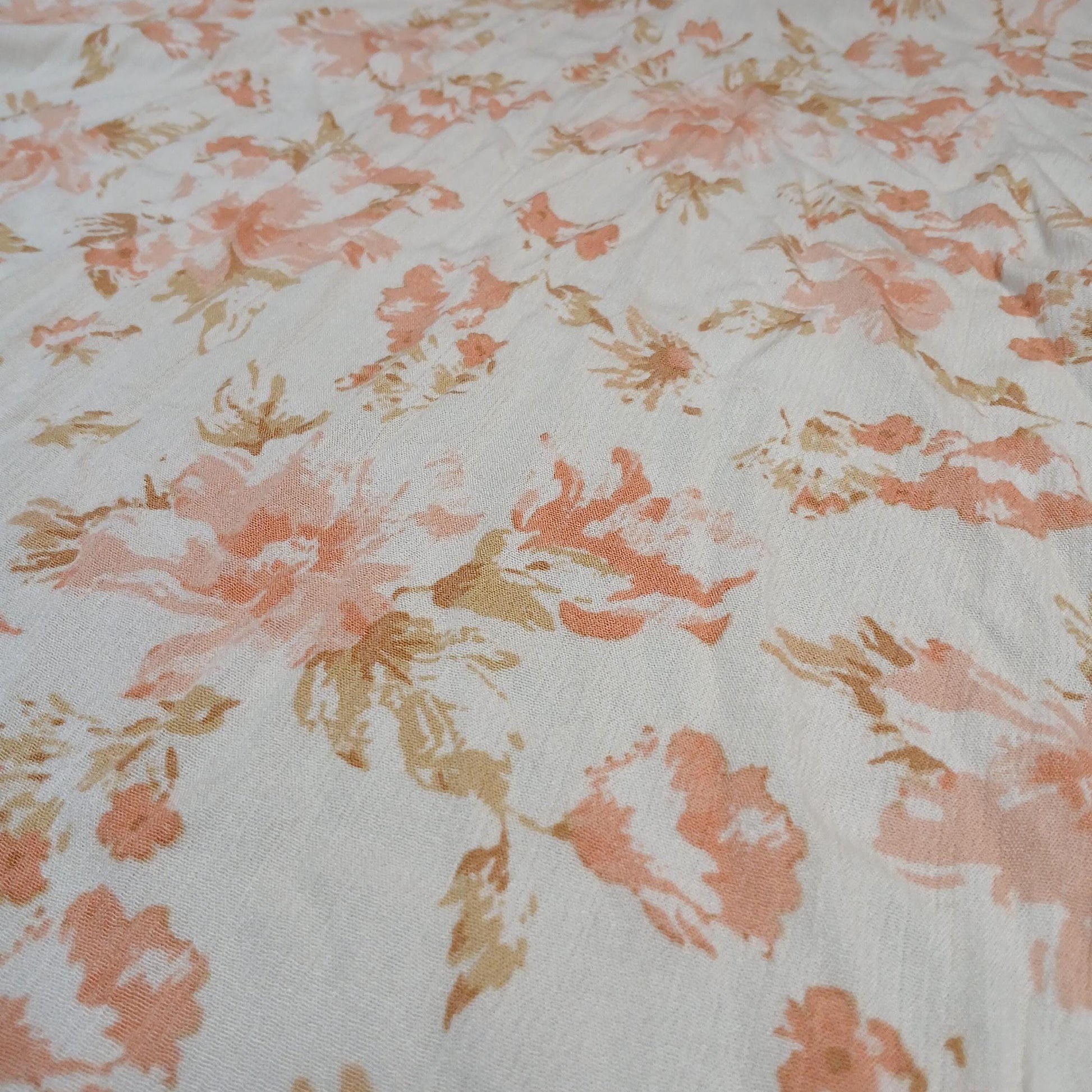 100% Rayon Crinkled Challis Fabric Orange and Cream Floral Print Soft, Flowy Woven Fabric by the Yard