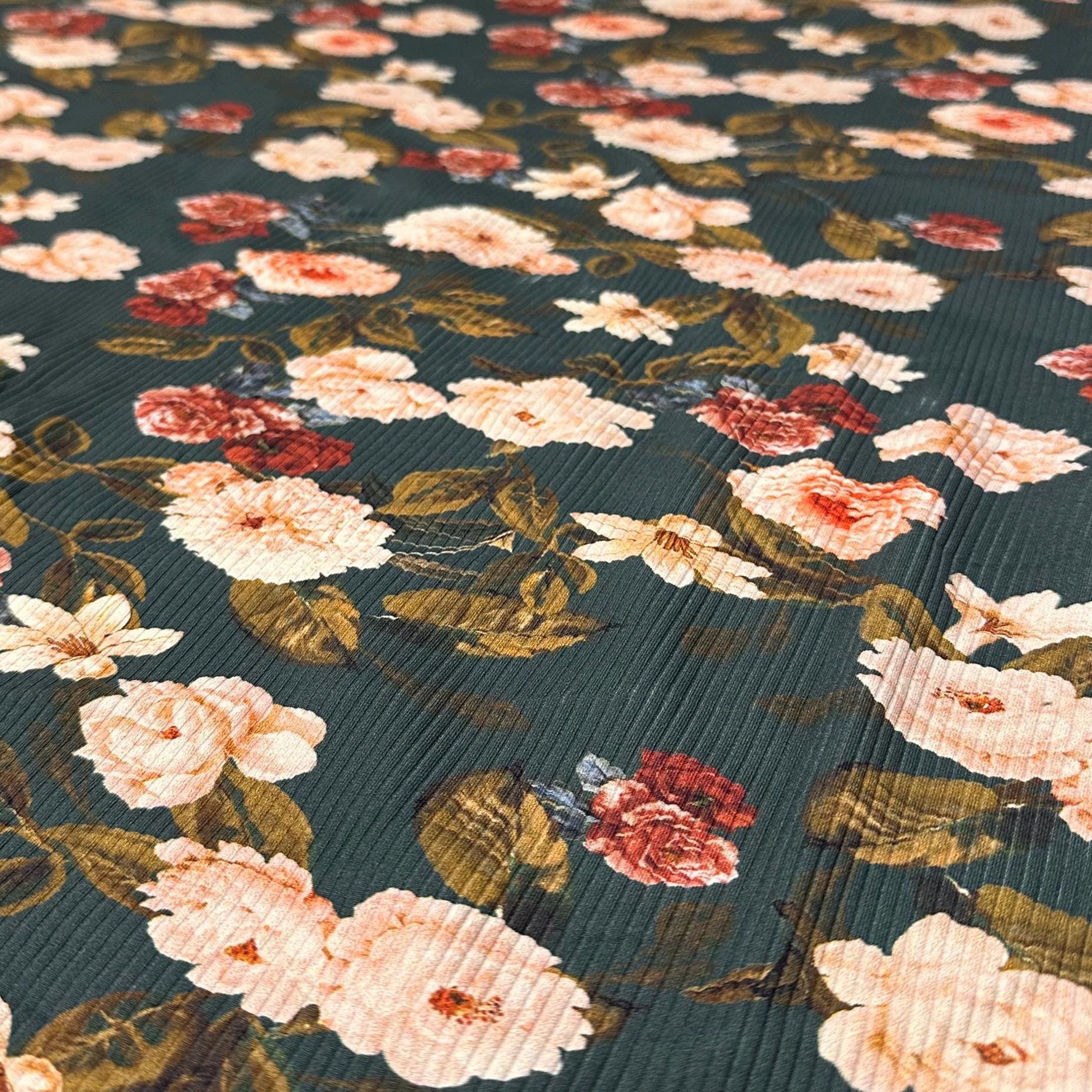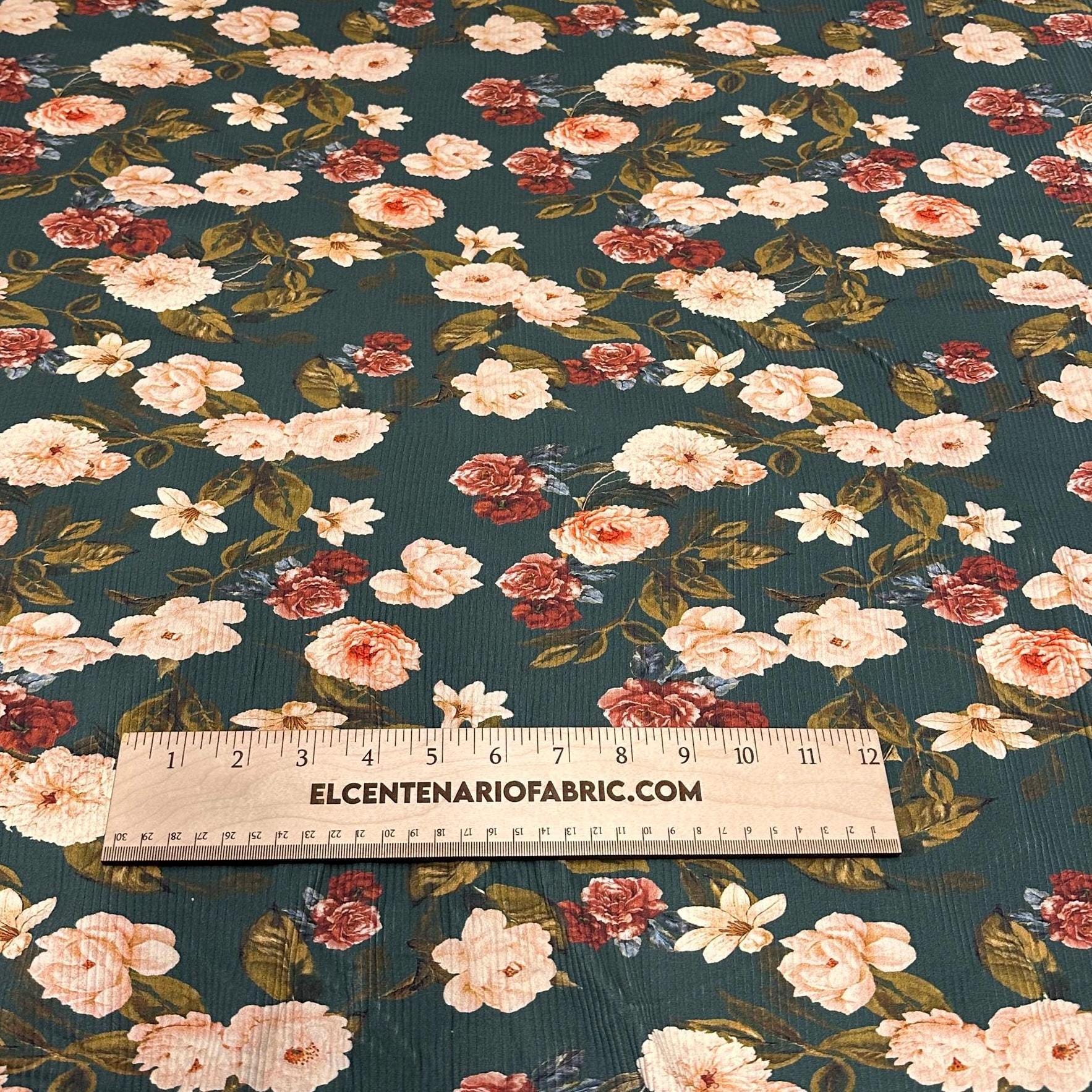 4 Way Stretch Assorted Print Nylon Spandex Fabric By The Yard Tricot Swim Wear Bikini Active Teal Floral Flower Rib Knit