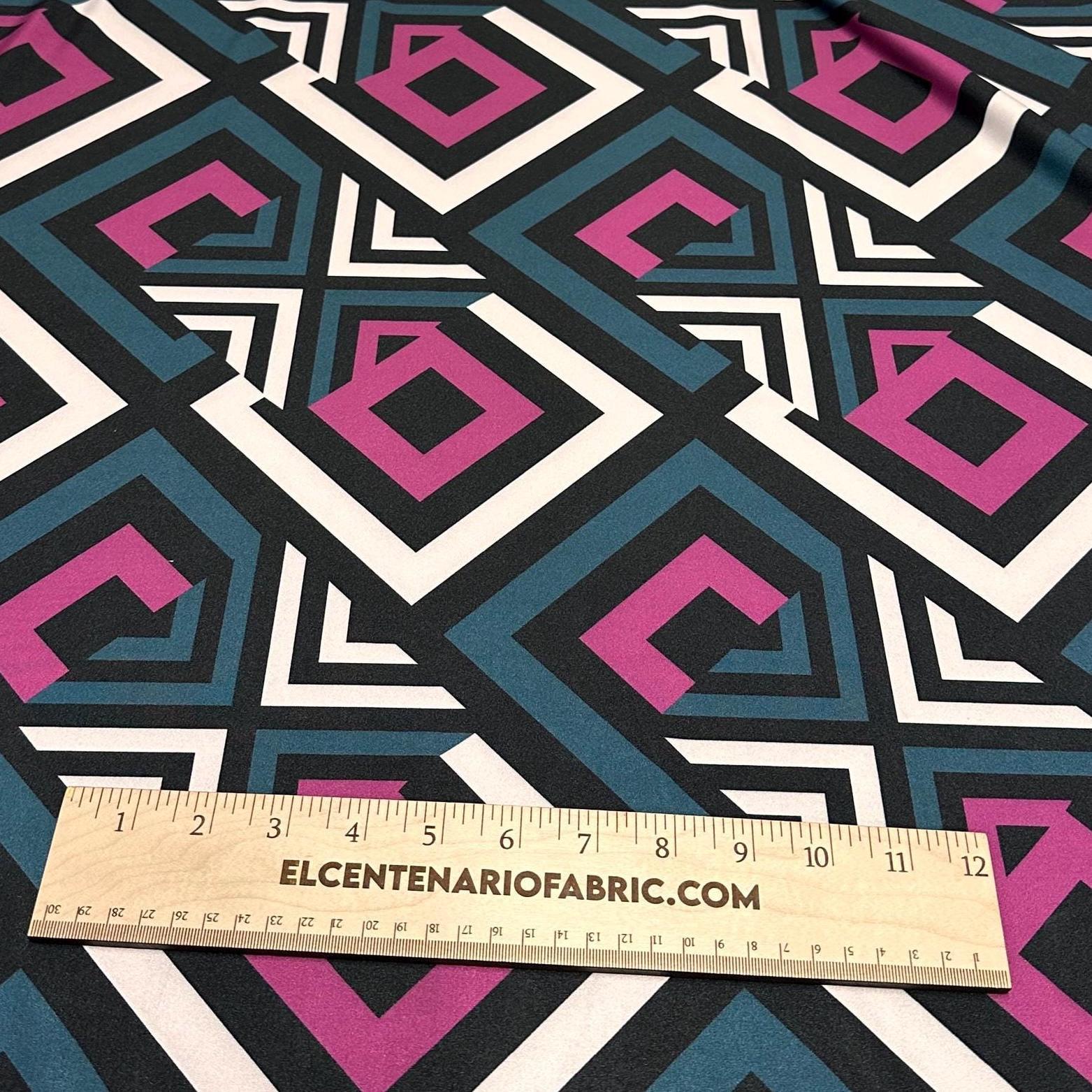 4 Way Stretch Print Nylon Spandex Fabric By The Yard Tricot Swim Wear Bikini Active Wear Abstract Geometrical Wave Print