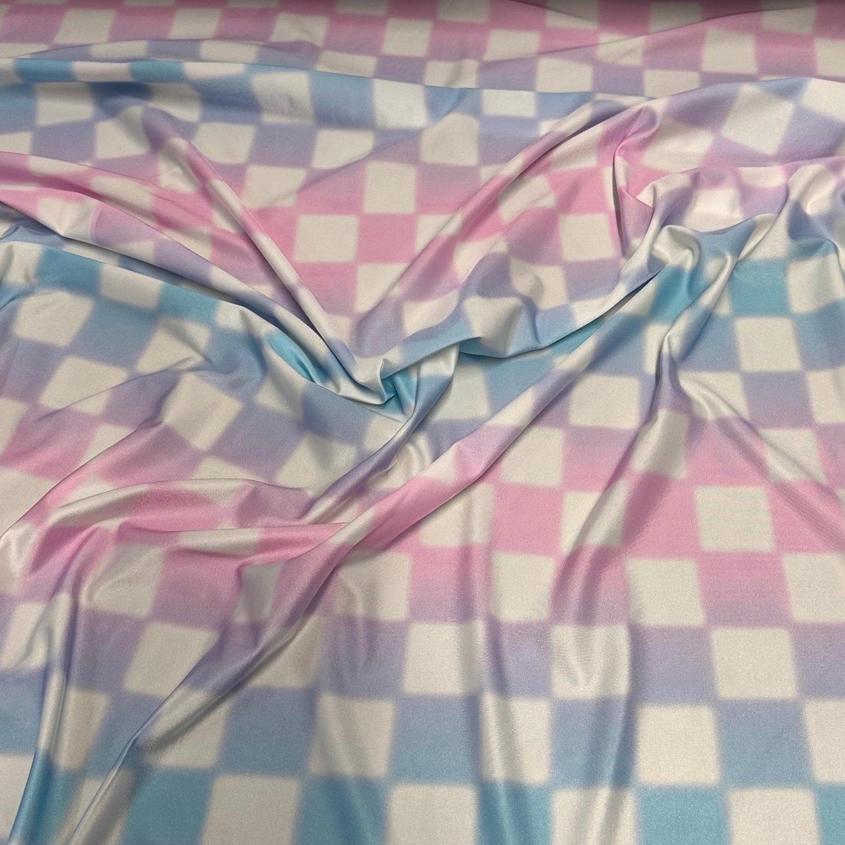 4 Way Stretch Print Nylon Spandex Fabric By The Yard Tricot Swim Wear Bikini Active Wear Abstract Hazy Checks Checkered