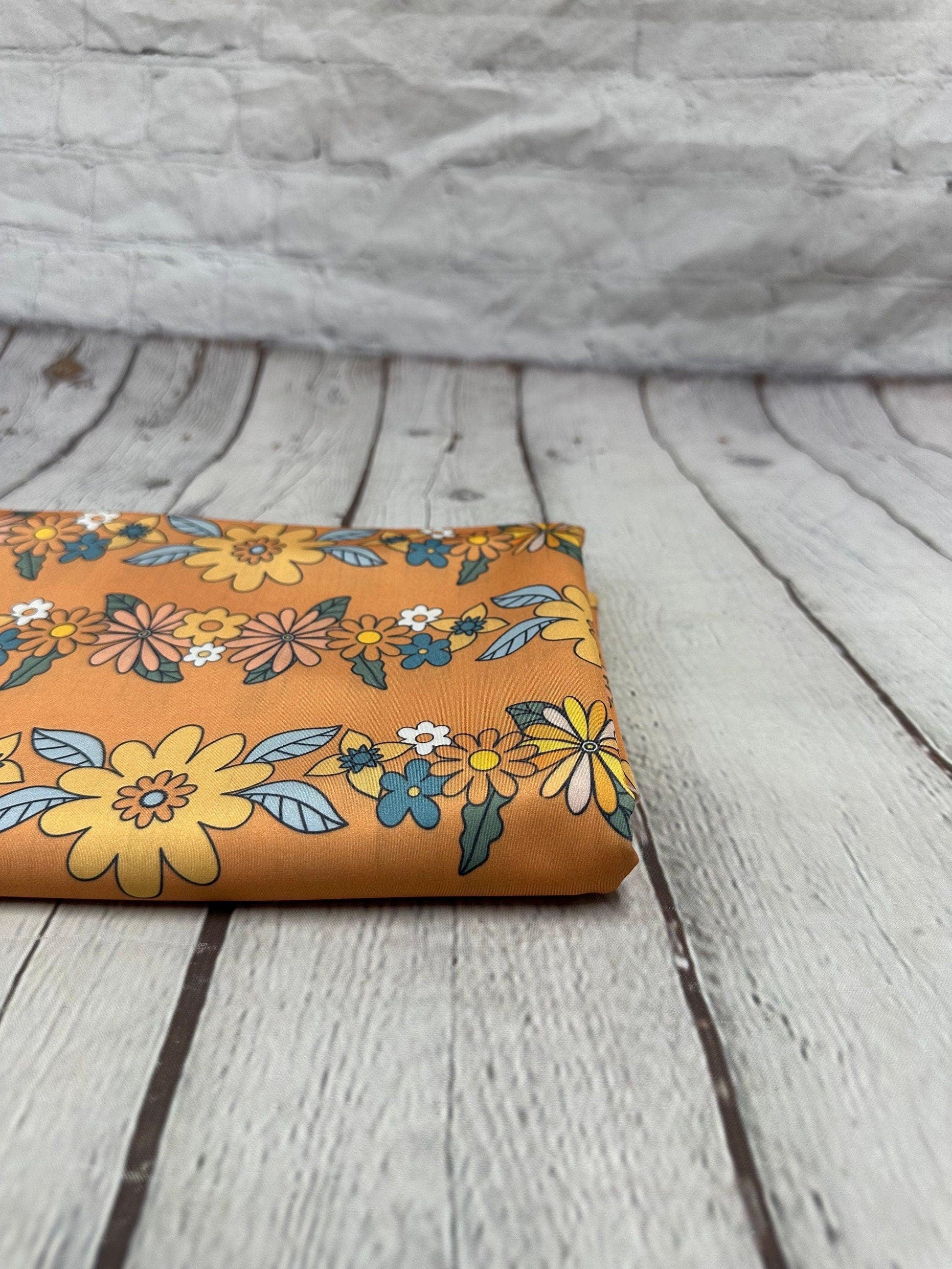 4 Way Stretch Print Nylon Spandex Fabric By The Yard Tricot Swim Wear Bikini Active Wear Boho Abstract Floral 70s Retro Vintage Rust 280 GSM