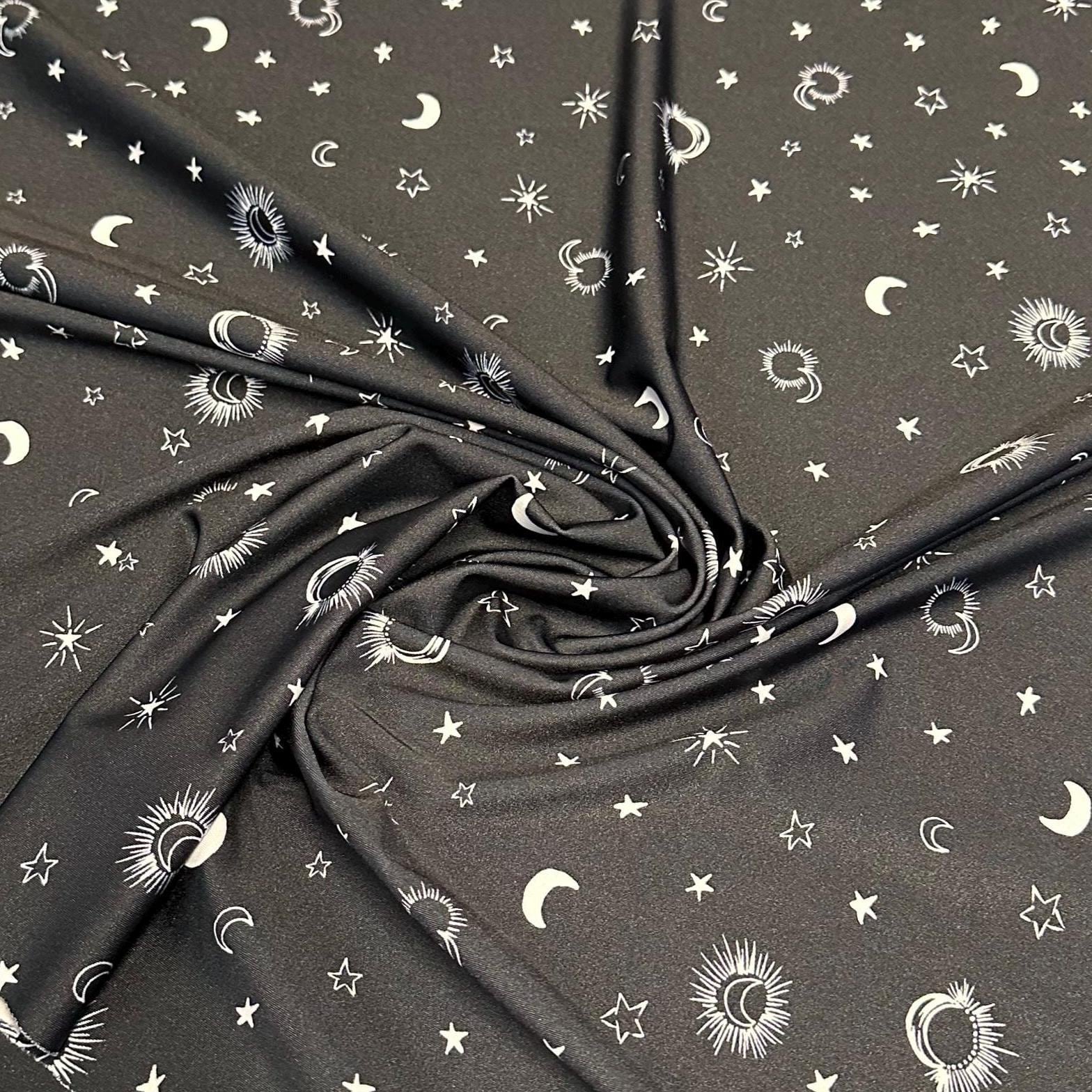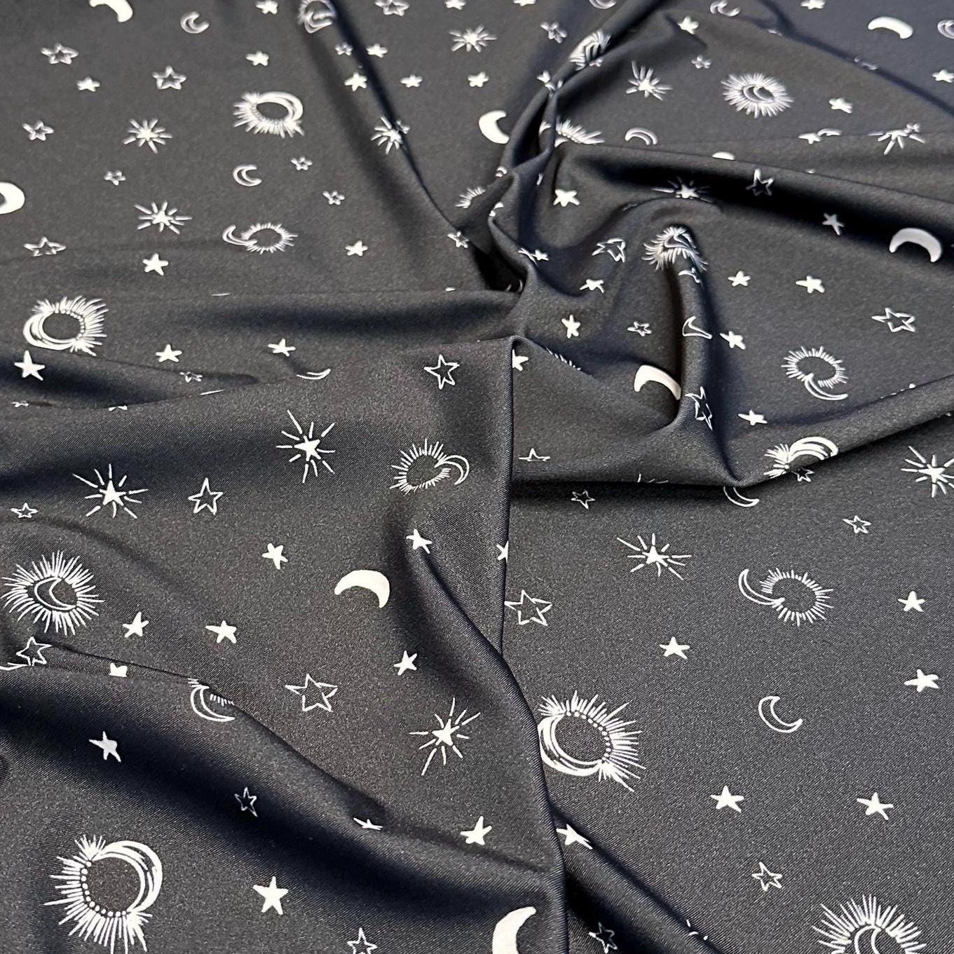 4 Way Stretch Print Nylon Spandex Fabric By The Yard Tricot Swim Wear Bikini Active Wear Crescent Moon Galaxy Star Print 280 GSM
