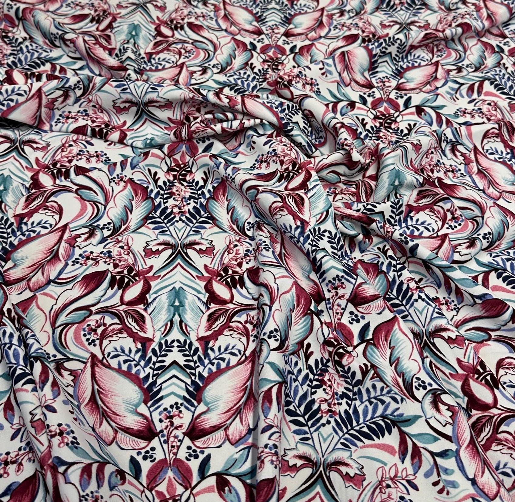 4 Way Stretch Print Nylon Spandex Fabric By The Yard Tricot Swim Wear Bikini Active Wear Floral Flower Leaf Teal Wine