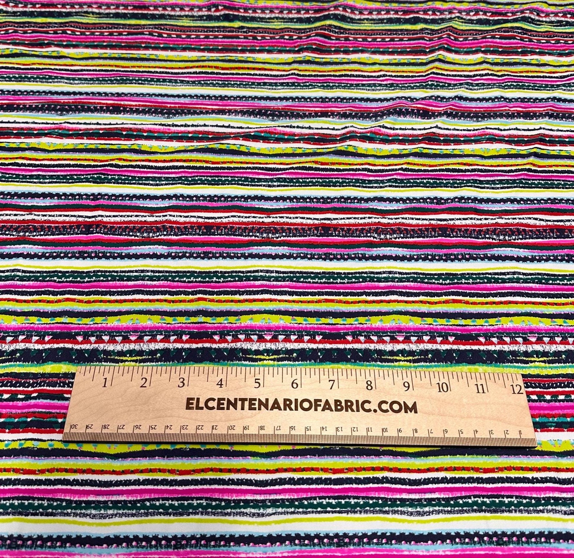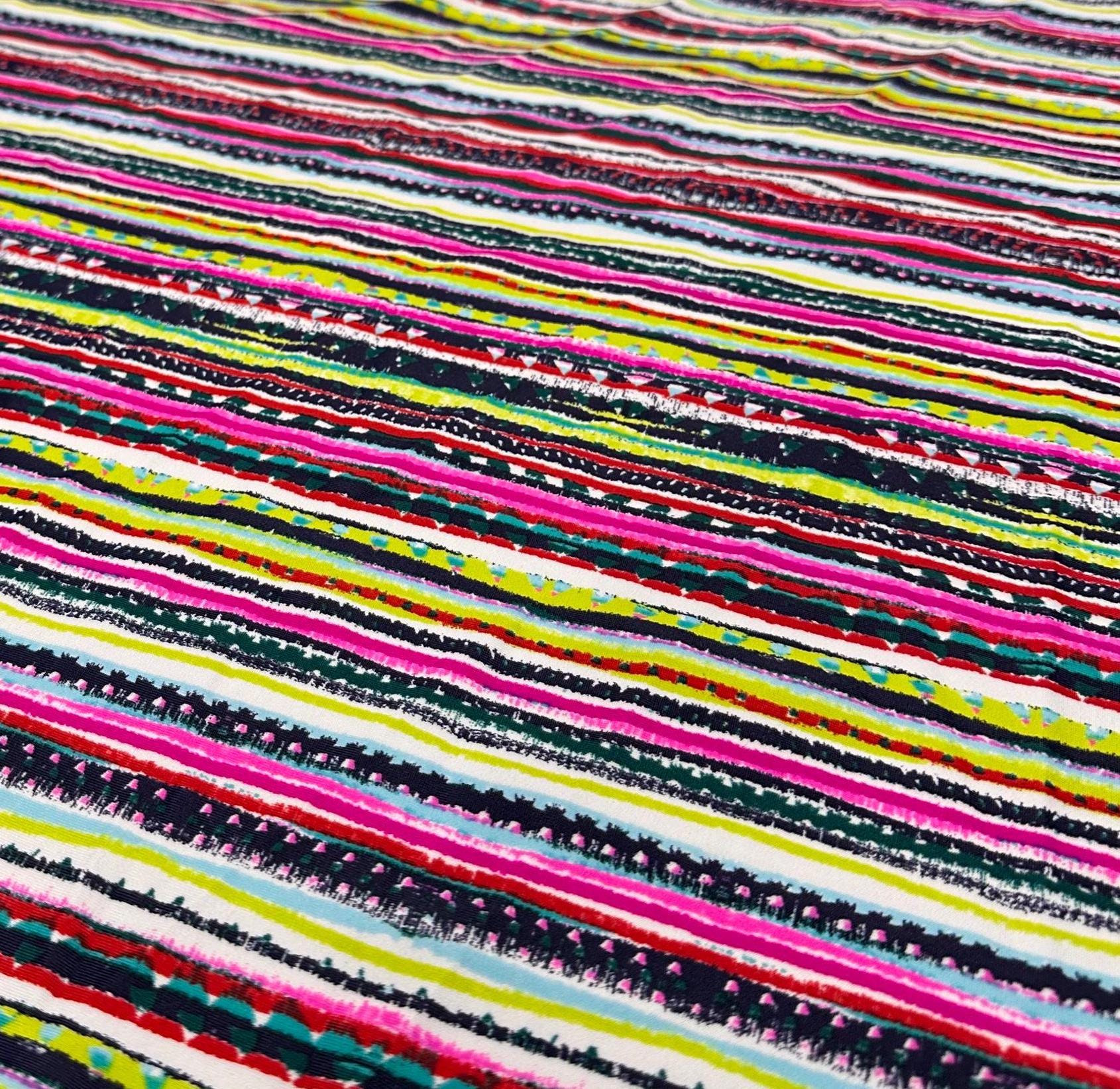 4 Way Stretch Print Nylon Spandex Fabric By The Yard Tricot Swim Wear Bikini Active Wear Multi Color Stripe Geometric Kiwi Magenta Rustic