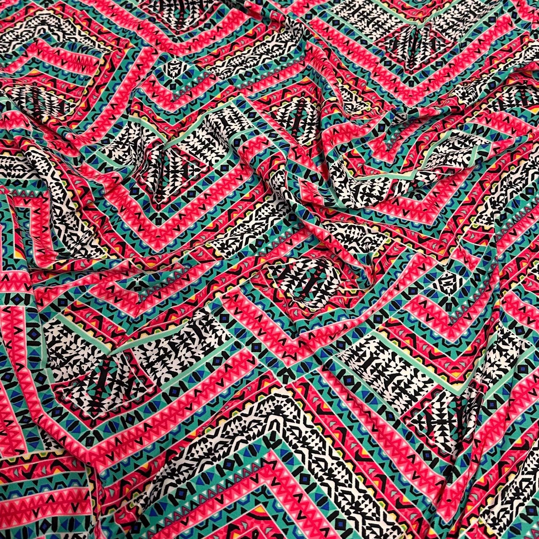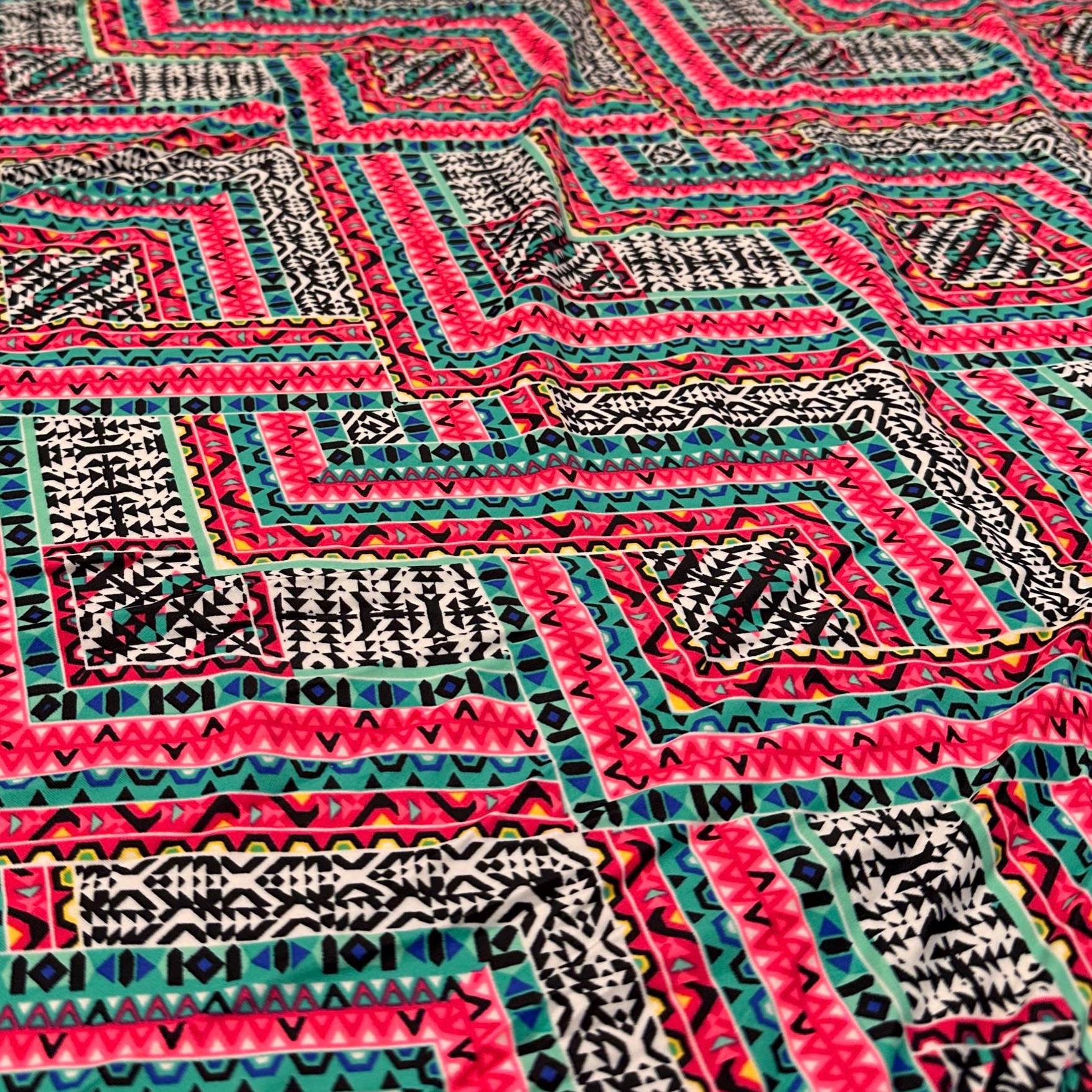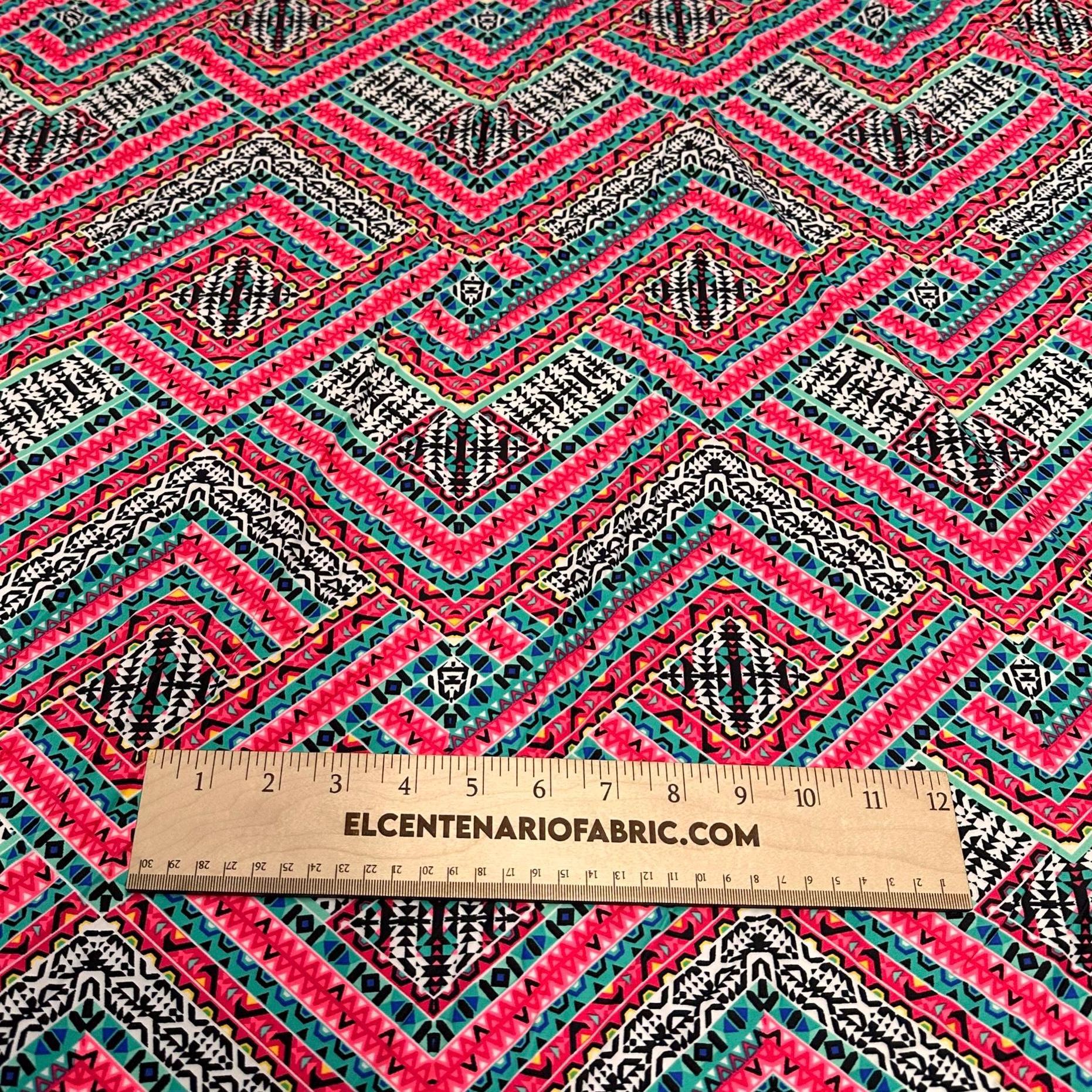 4 Way Stretch Print Nylon Spandex Fabric By The Yard Tricot Swim Wear Bikini Active Wear Neon Pink Abstract Geometric Rustic
