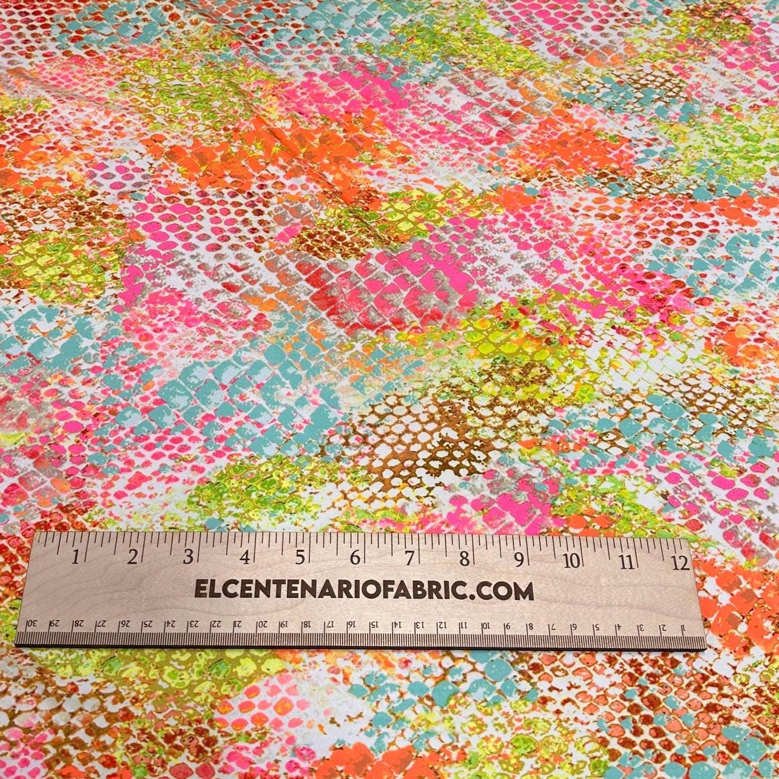4 Way Stretch Print Nylon Spandex Fabric By The Yard Tricot Swim Wear Bikini Active Wear Snake Skin Reptile Anaconda Bright Mulitcolor Neon