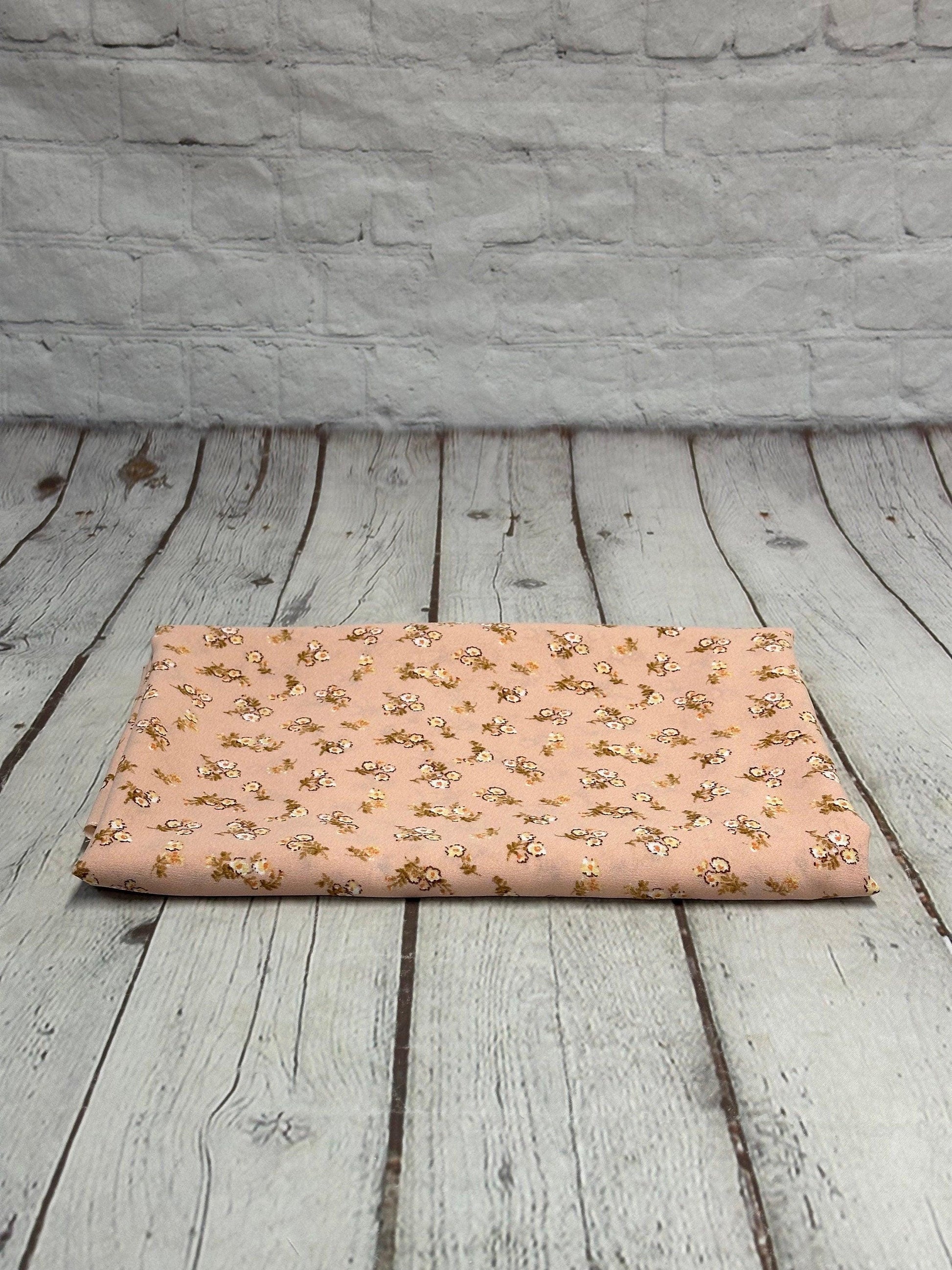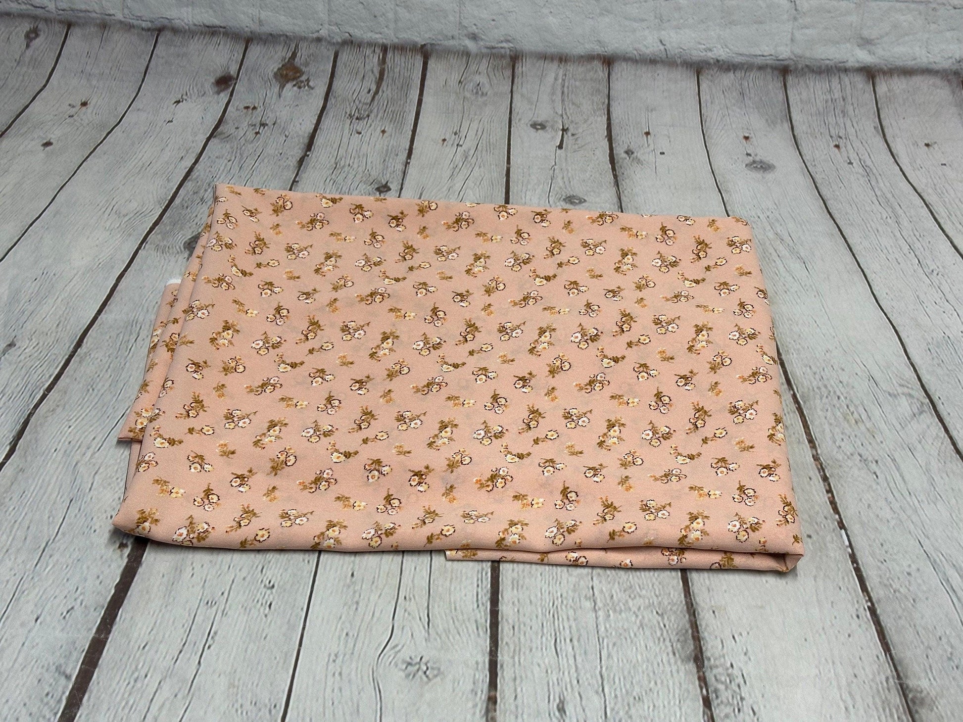 Crinkled Woven Print Fabric By The Yard Small Mini Peach Summer Floral Print